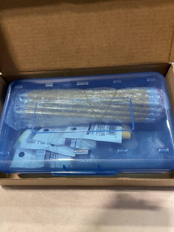 2 NEW LARGE BLUE PENCIL CASE WITH 30 PACK OF NEW PENCILS, PRE SHARPENED, 4 LARGE ERASERS AND 2 NEW