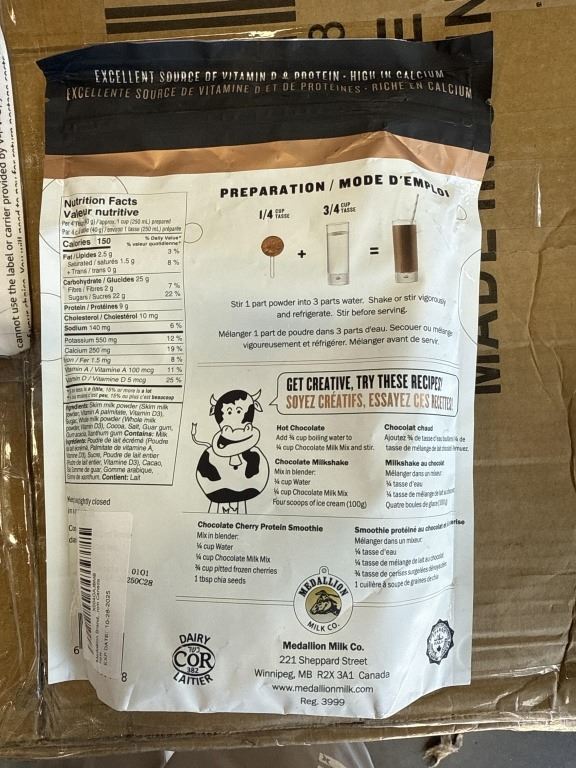 2 NEW MEDALLION MILK CO. CHOCOLATE MILK MIX, 500G BAGS