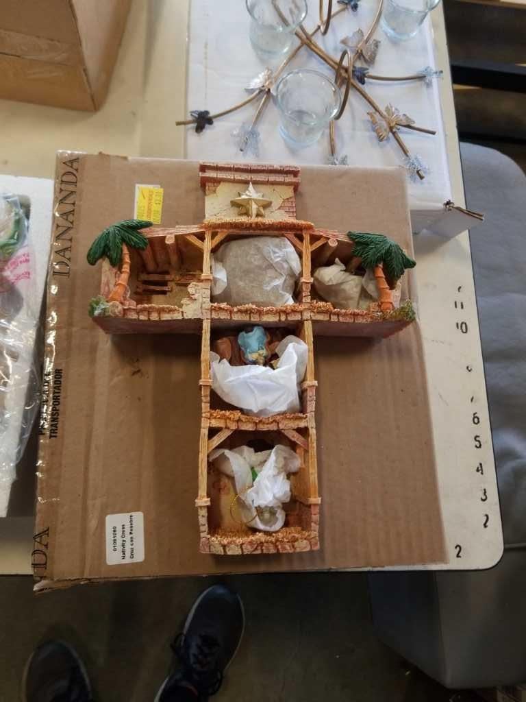2 NEW NATIVITY SET CROSSES, CANDLE HOLD AND 2 NEW BOBGLY FISH
