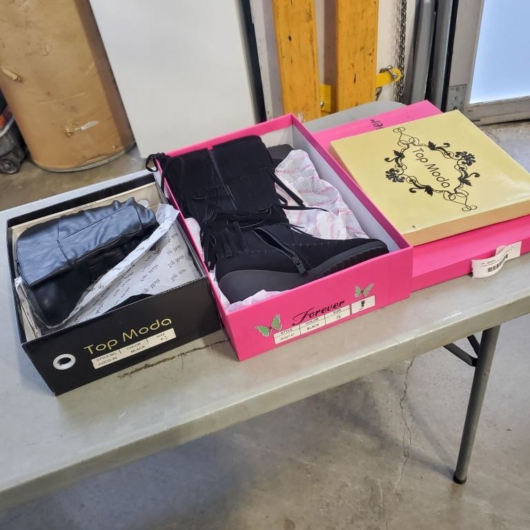2 NEW PAIRS OF BOOTS, SIZE 5.5 AND 7.5
