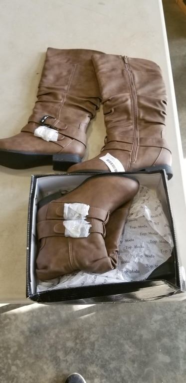 2 NEW PAIRS OF LEATHER BOOTS SIZE 5 AND 7.5
