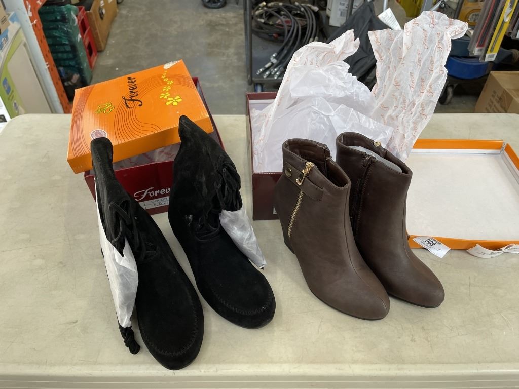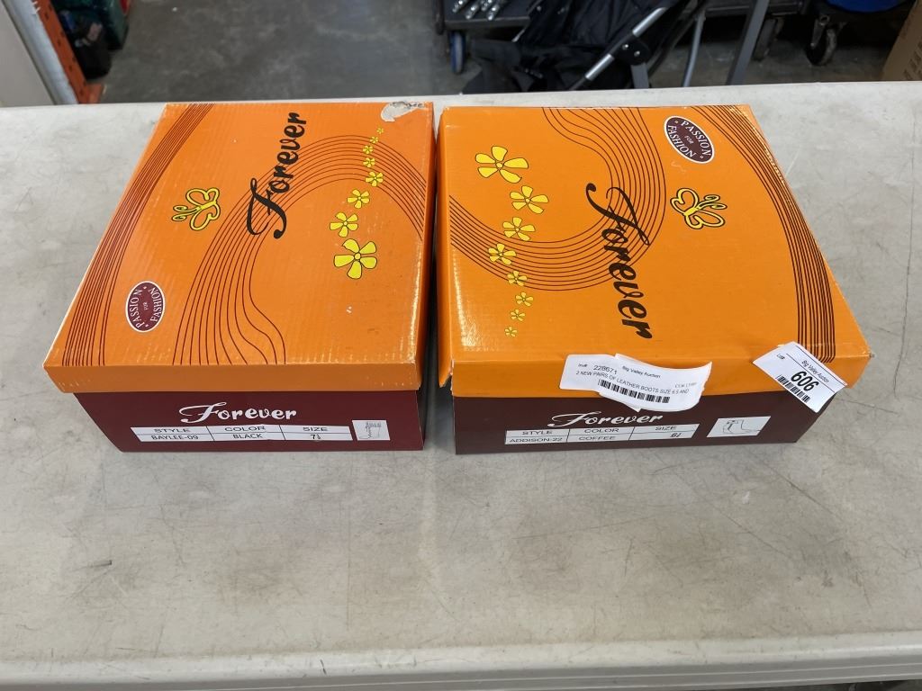 2 NEW PAIRS OF LEATHER BOOTS SIZE 6.5 AND 7.5