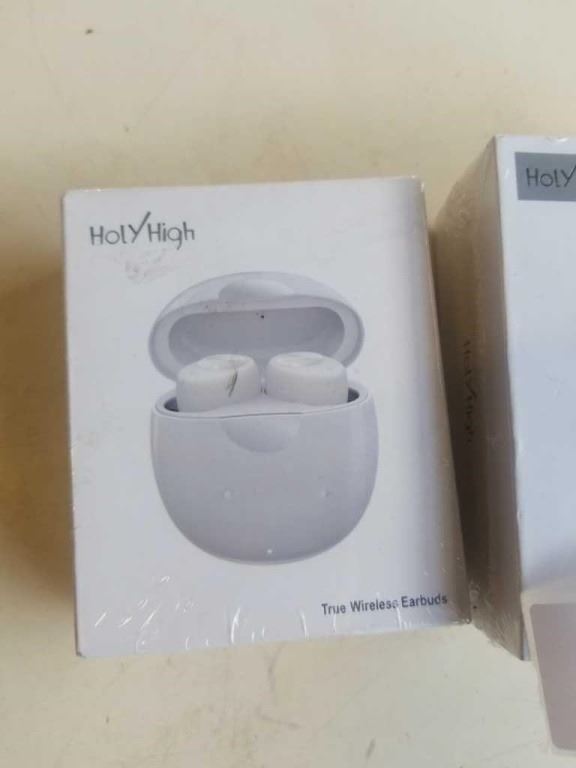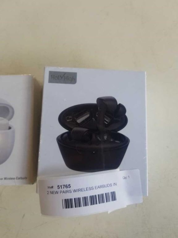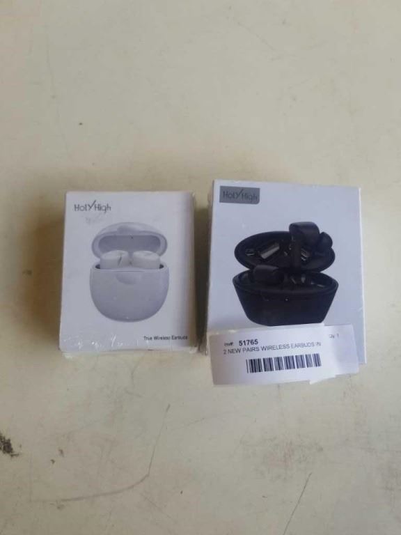 2 NEW PAIRS WIRELESS EARBUDS IN CHARGING CASE - HOLY HIGH WHITE AND BLACK