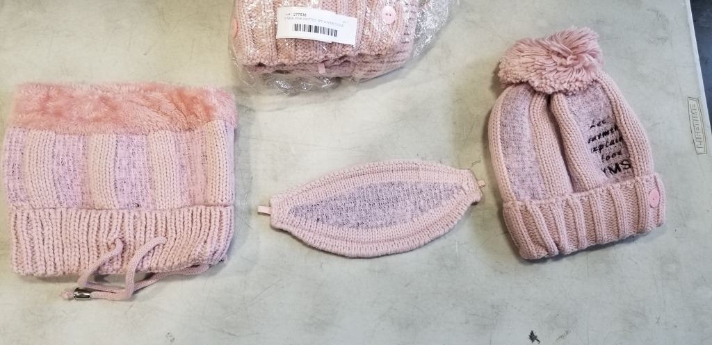 2 NEW PINK KNITTED 3PC WINTER TOQUE, NECK WARMER AND MOUTH COVER