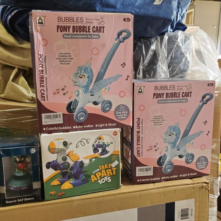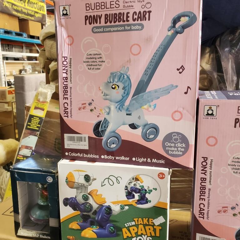 2 NEW PONY LIGHTS AND SOUND BUBBLE BLOWING CARTS, TAKE APART TOY AND MARVIN THE MARTIAN SALT/PEPPER