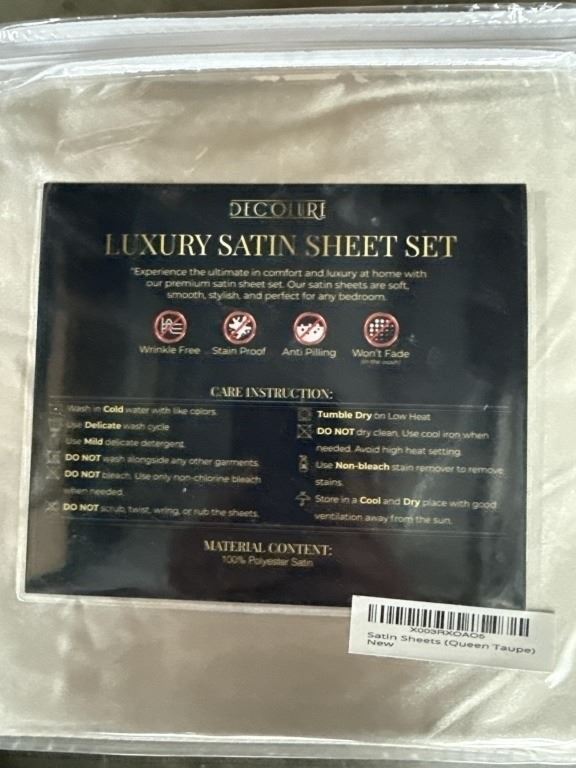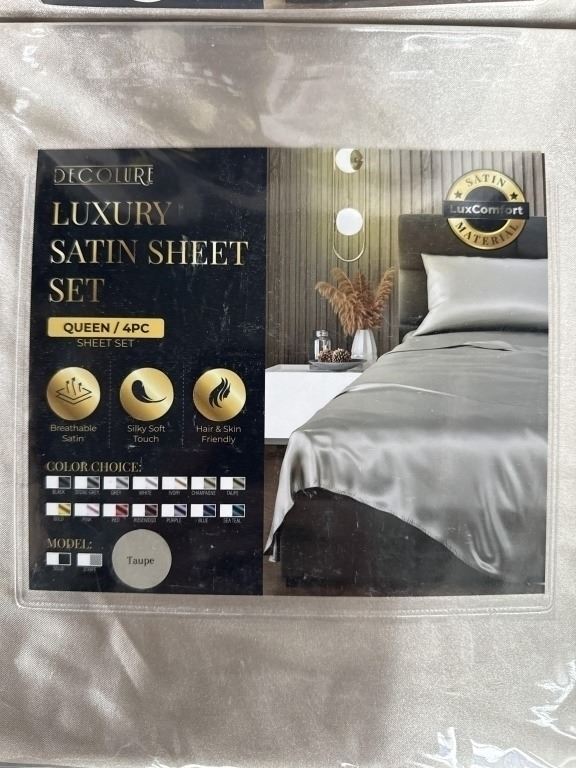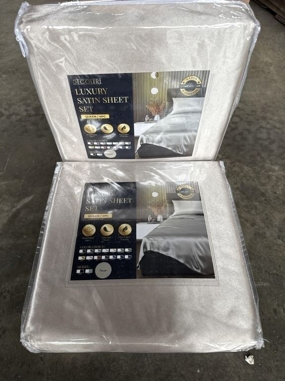 2 NEW QUEENSIZE 4PC LUXURY SATIN SHEET SETS, TAUPE