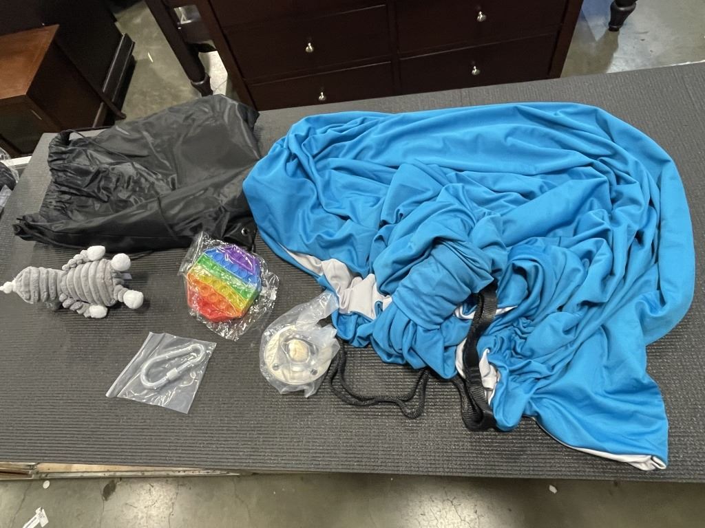 2 NEW REVERSIBLE HANGING FABRIC CHAIRS PINK /GREY AND BLUE/GREY SUPPORTS UP TO 200 LB