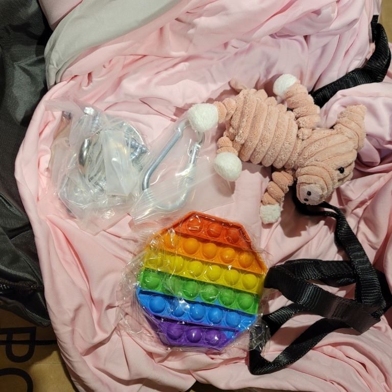 2 NEW REVERSIBLE HANGING FABRIC CHAIRS PINK /GREY AND BLUE/GREY