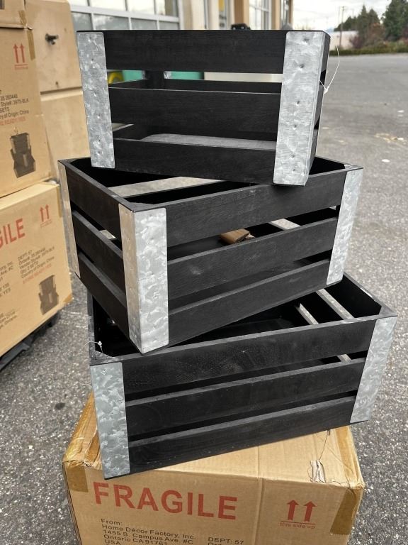 2 NEW SETS OF 3 BLACK AND SILVER NESTING BOXES