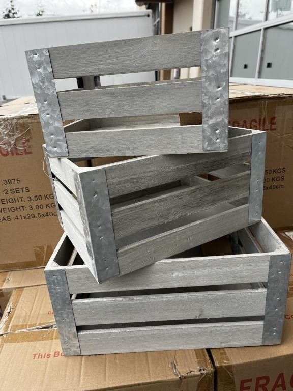 2 NEW SETS OF 3 GREY AND SILVER NESTING BOXES