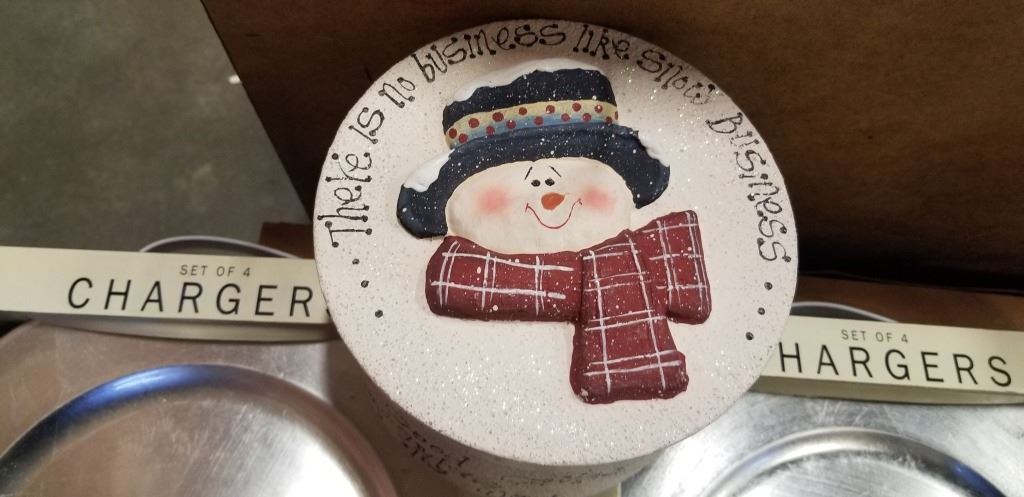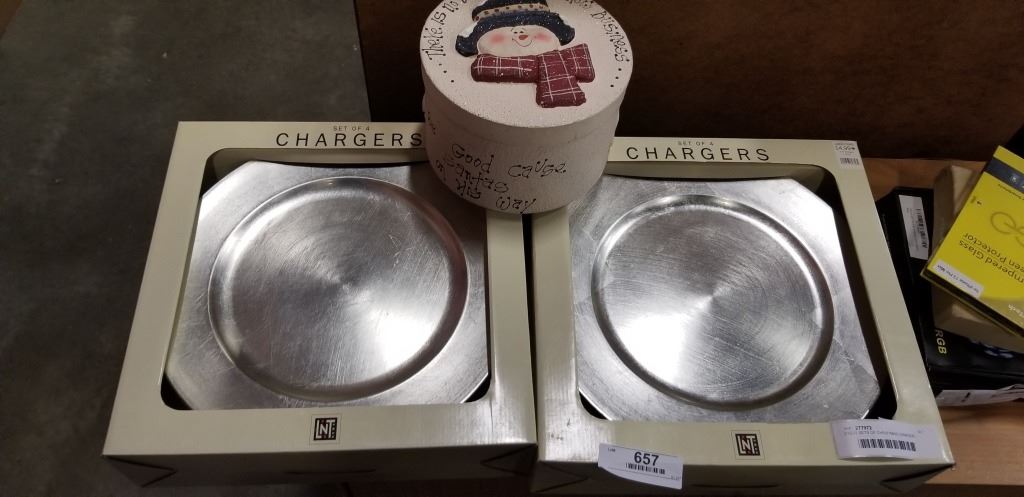 2 NEW SETS OF CHRISTMAS CHARGER PLATES, AND NEW  HAND MADE GIFT BOX