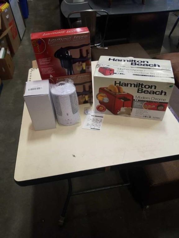 2 NEW SOAP DISPENSERS, 2 NEW LIGHTNING LEVER CORKSCREWS AND HAMILTON BEACH TOASTER
