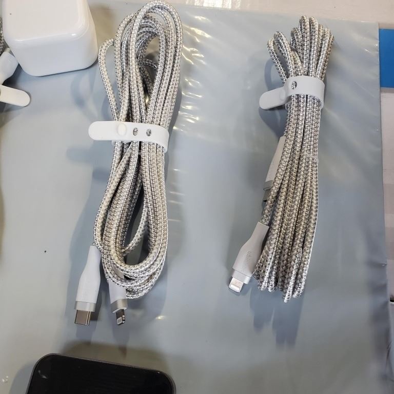2 NEW WIRELESS CHARGING POWER BANKS WITH 4 NEW APPLE IPHONE CHARGE CORDS 2-10FT AND 2-6FT AND WALL PLUG RETAIL $125