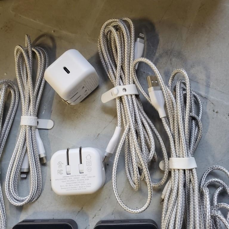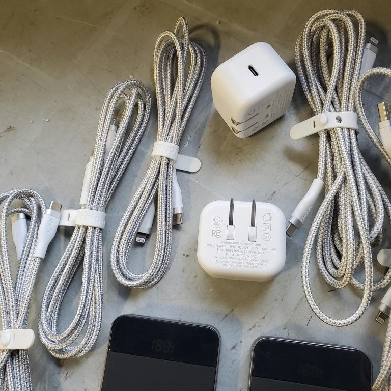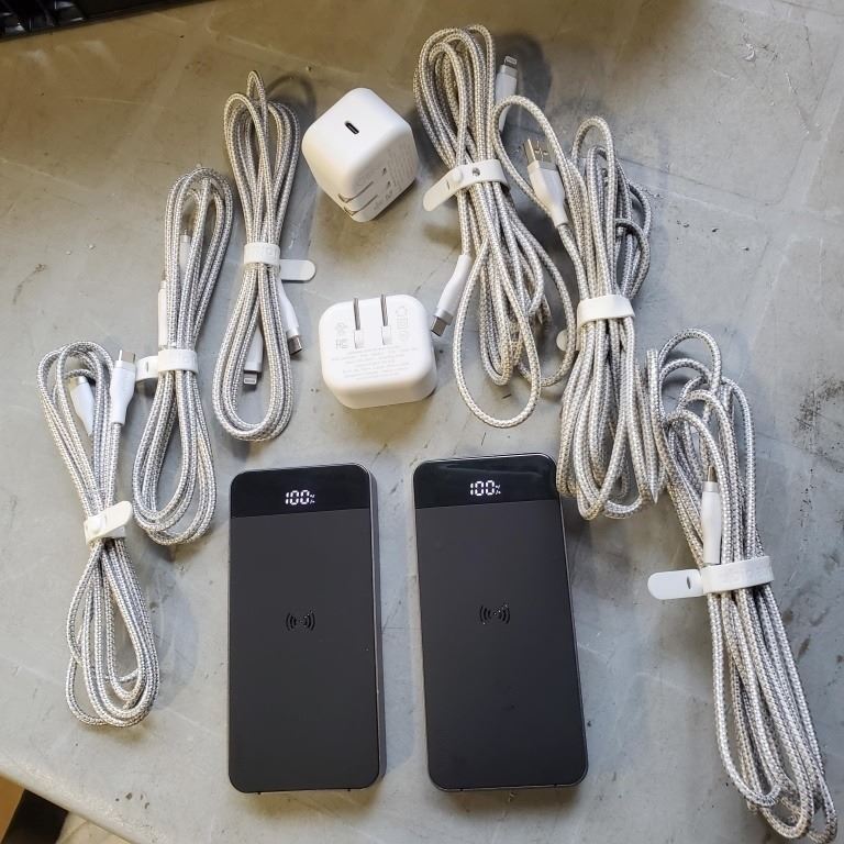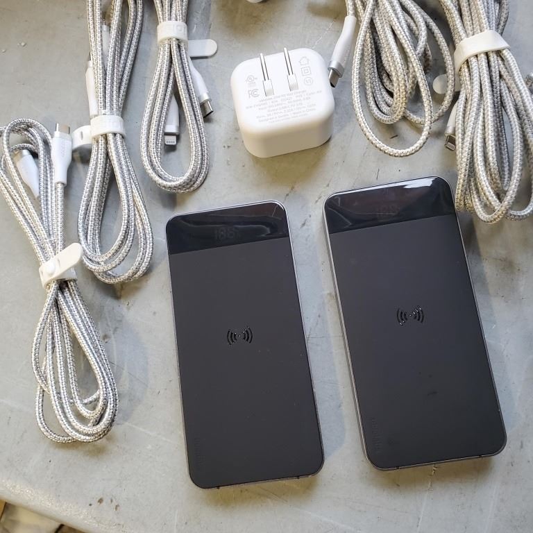 2 NEW WIRELESS CHARGING POWER BANKS WITH 6 NEW APPLE IPHONE CHARGE CORDS 3-10FT AND 3-6FT AND 2 WALL