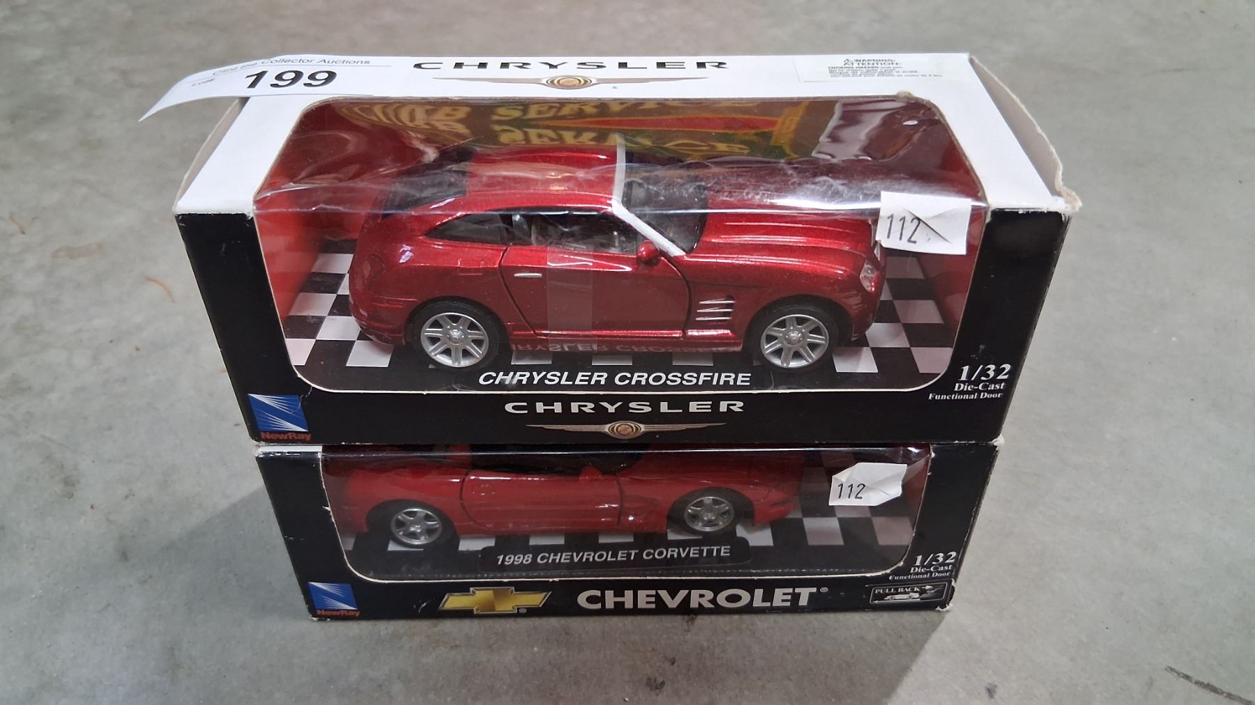2 NIB 1:32 scale die cast cars, Chrysler Crossfire & Chevrolet Corvette