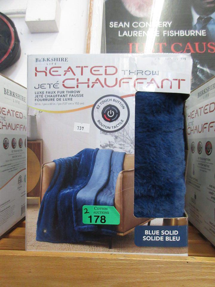 2 Navy Berkshire Faux Fur Heated Throws