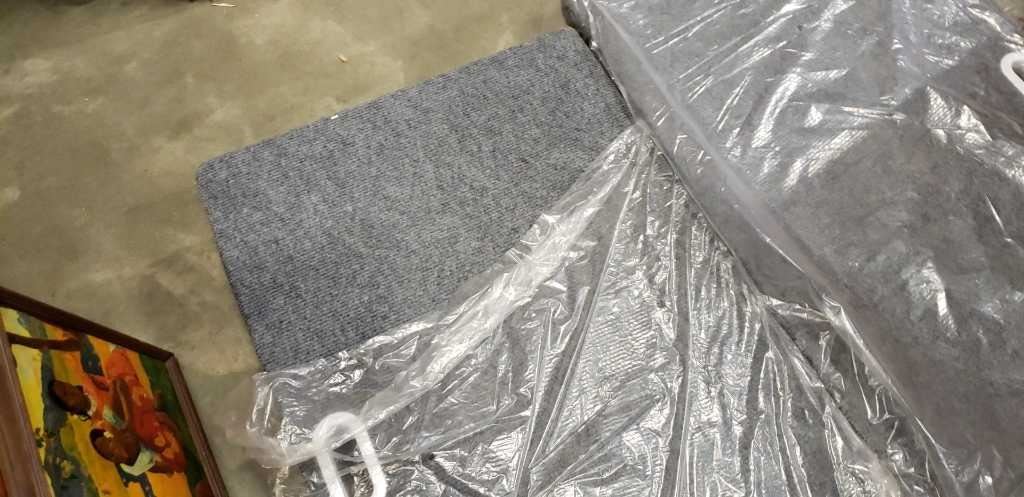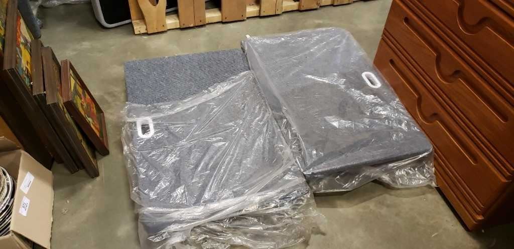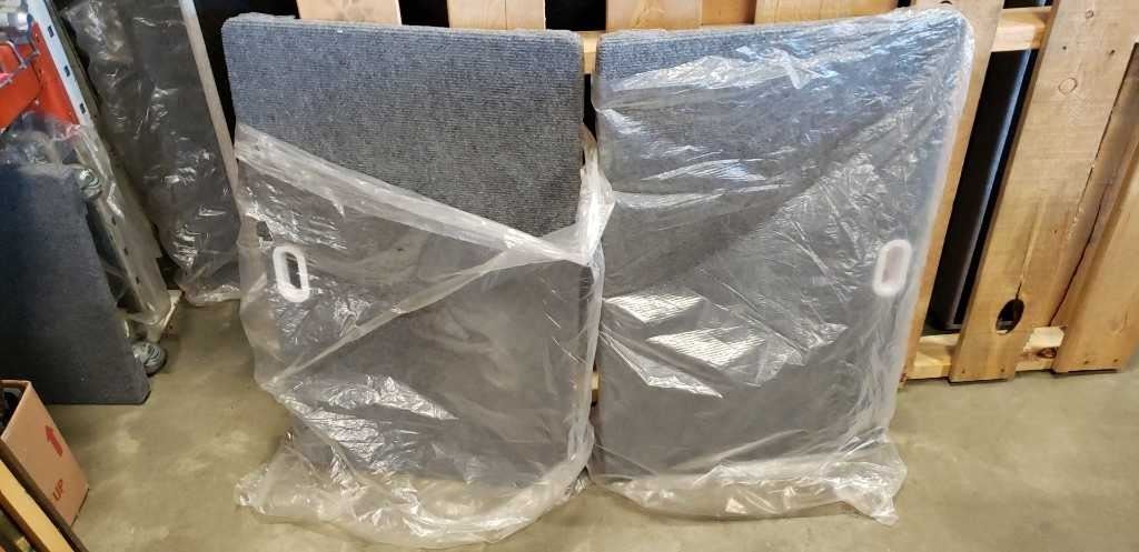 2 New 4 wheel carpeted dollys 3 inch rubber non marking heavy duty casters. -Carpeted, rounded corners, 3/4" thick slab, with handle. -SIZE 32" x 20" -Rated for 800 lbs -Used by professional movers.