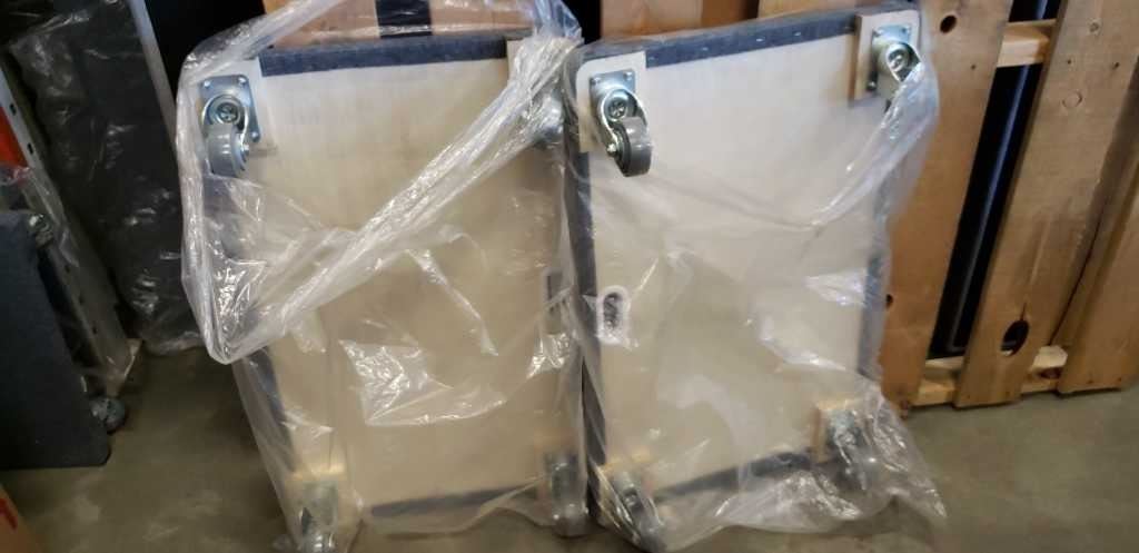 2 New 4 wheel carpeted dollys 3 inch rubber non marking heavy duty casters. -Carpeted, rounded corne