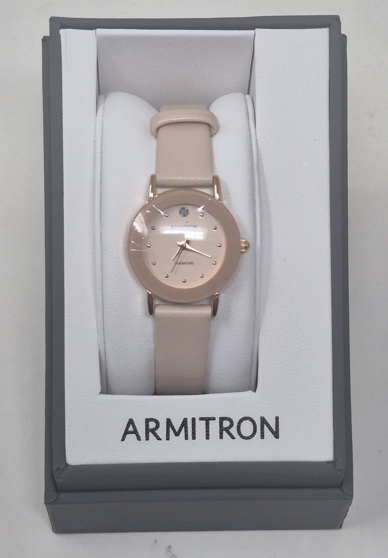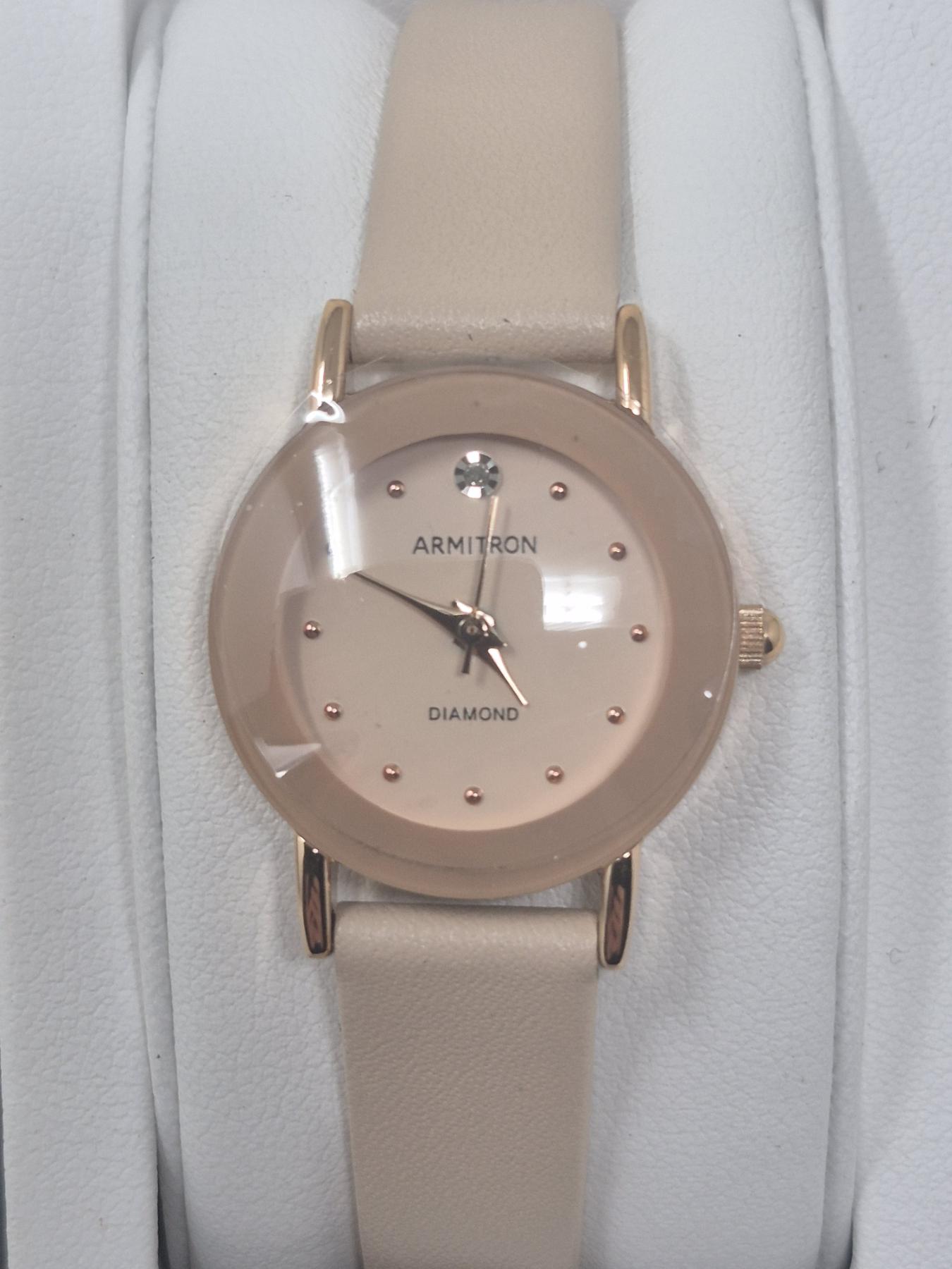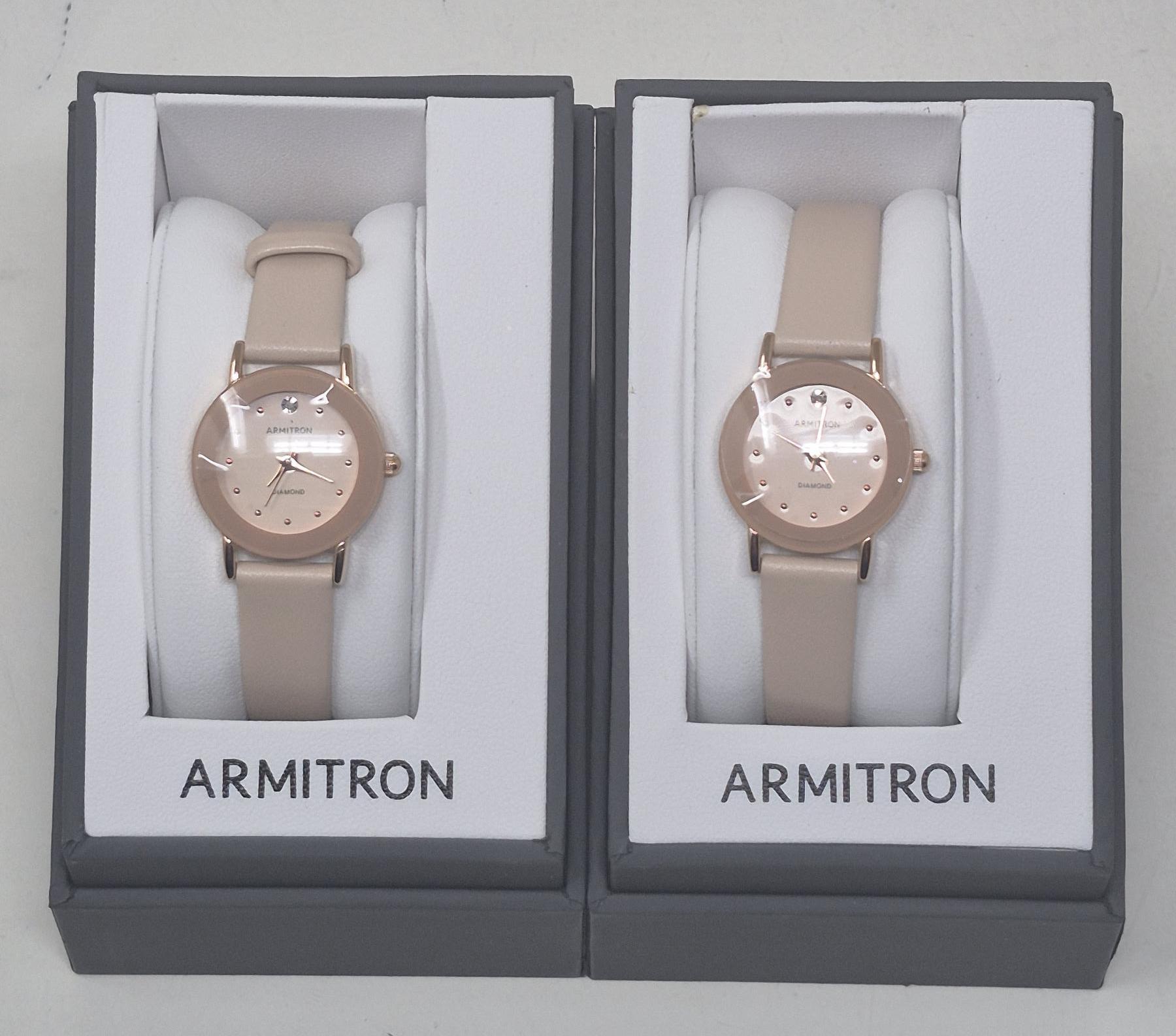 Diamond-set at 12 o'clock. Both watches have soft pink straps. Complete with gift box and warranty card.