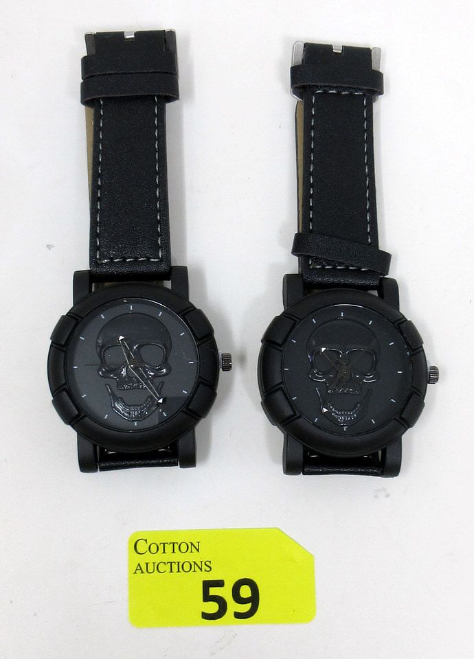 2 New Black Watches with Black Skull Faces