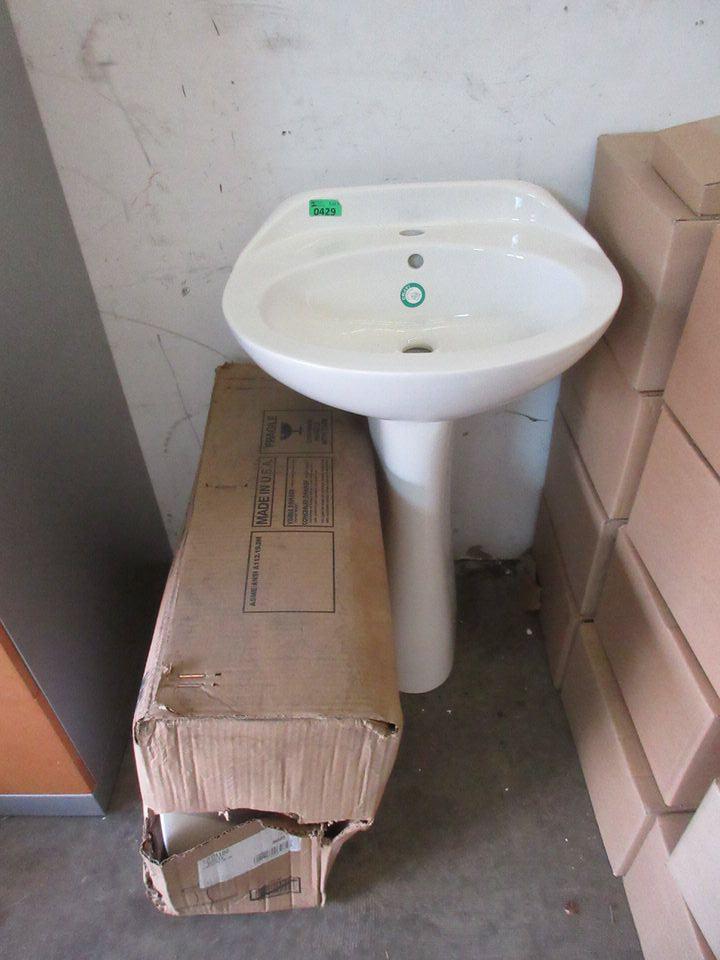 2 New Crane White Ceramic Pedestal Sinks