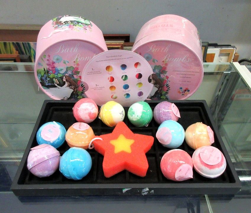 Each set contains 12 x 3 oz bath bombs and a sponge per set.