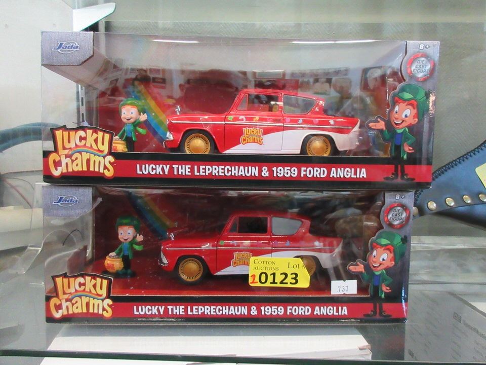 Lucky the Leprechaun & 1959 Ford Anglia.