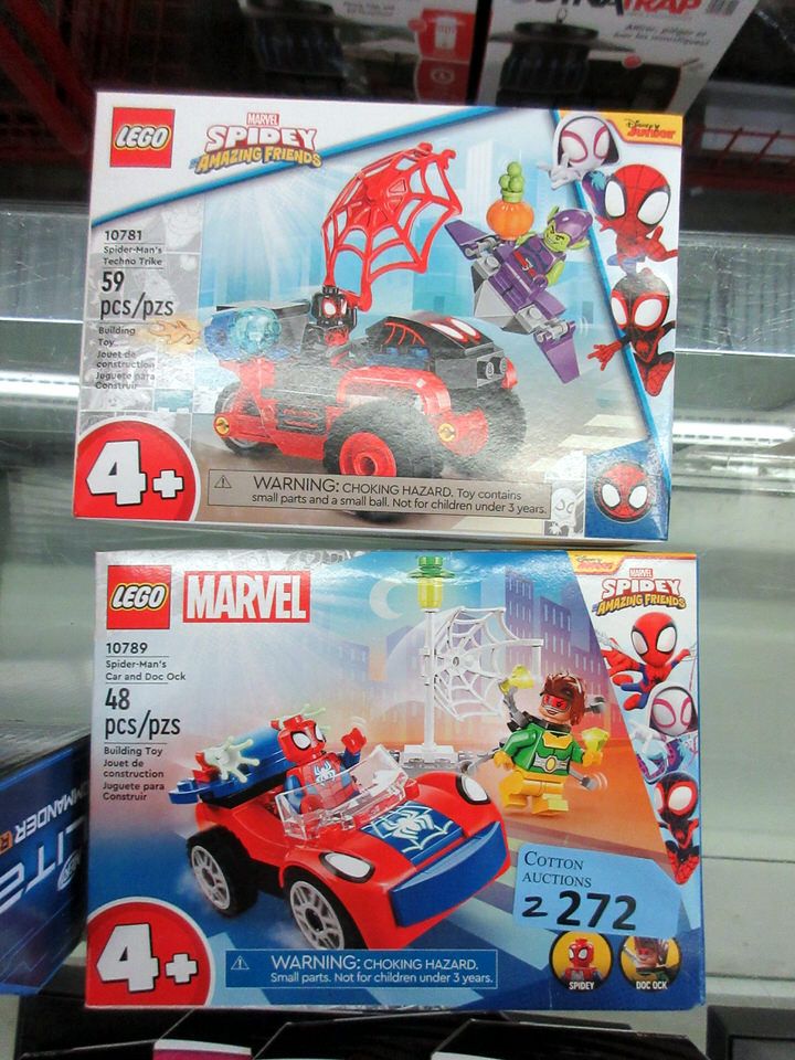 59 pcs. Spider-Man's Techno Trike #10781, and 48 pcs. Car and Doc Ock #10789.