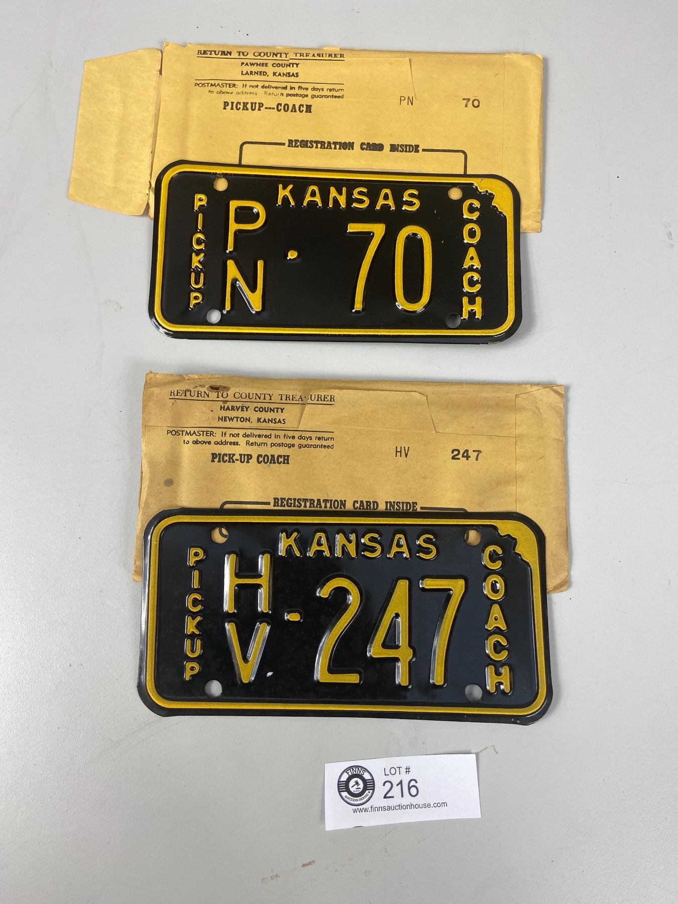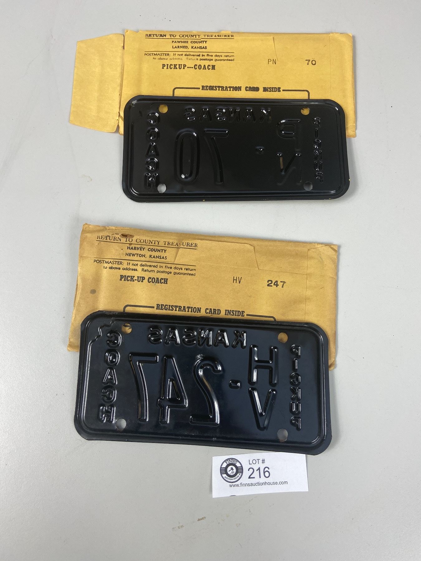 2 New Old Stock Kansas Pick up Coach License Plates From Different Countries in Original Envelopes