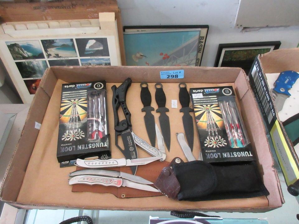 Set of 3 throwing knives, 1 knife with 3" blade , and 5 pen knives.