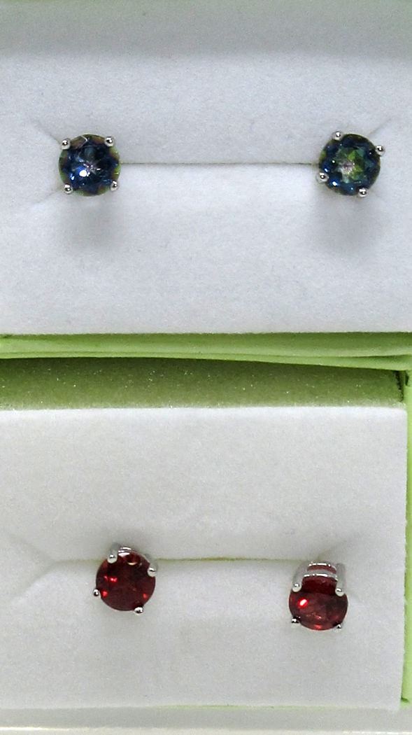 Ocean blue mystic topaz earrings & garnet earrings. Post & butterfly backs.