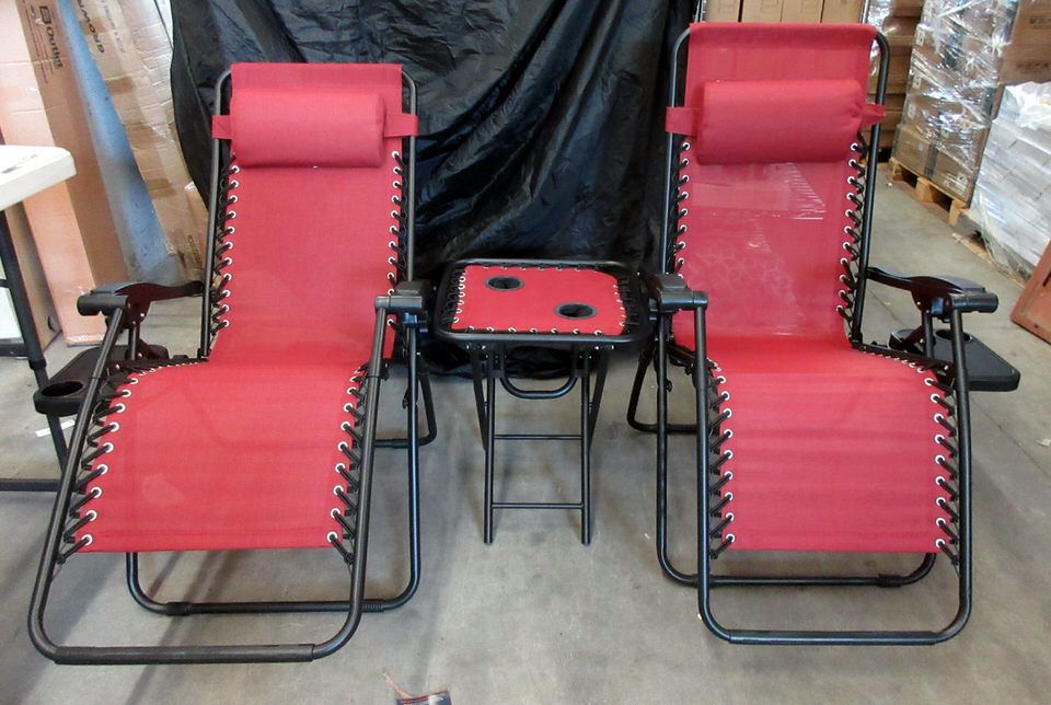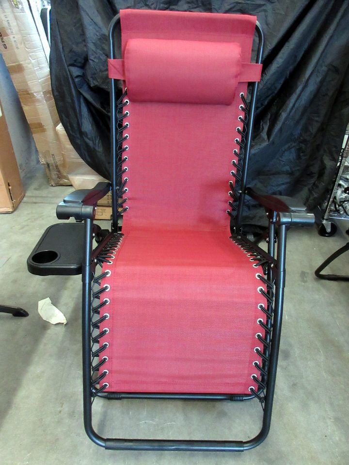 2 New Red Zero Gravity Lounge Chairs w/ Side Table