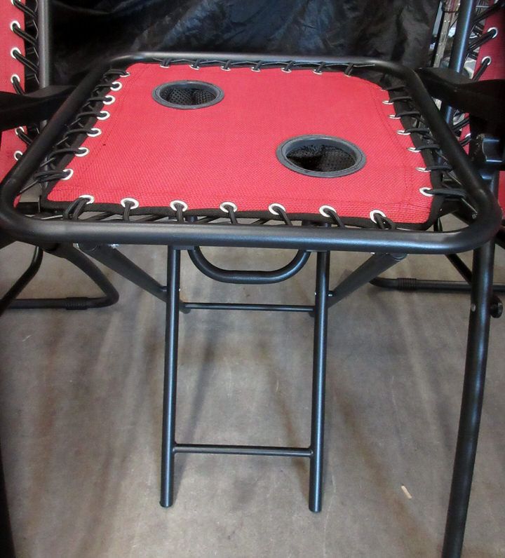 Amazon Basic product. Alloy Steel frame. Each chair has a removable headrest pillow cup holder. Side table has 2 cup holders. SKU: 2022136.