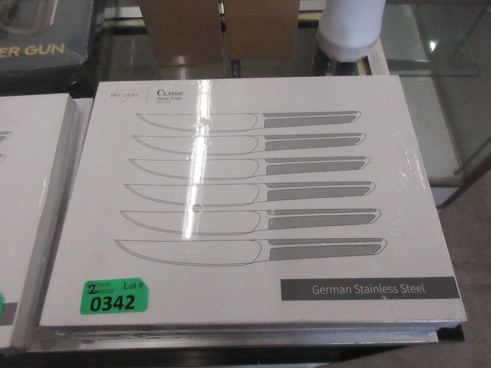 German forged stainless steel with non slip ebony handles. Non serrated edge to get closer to the bone.