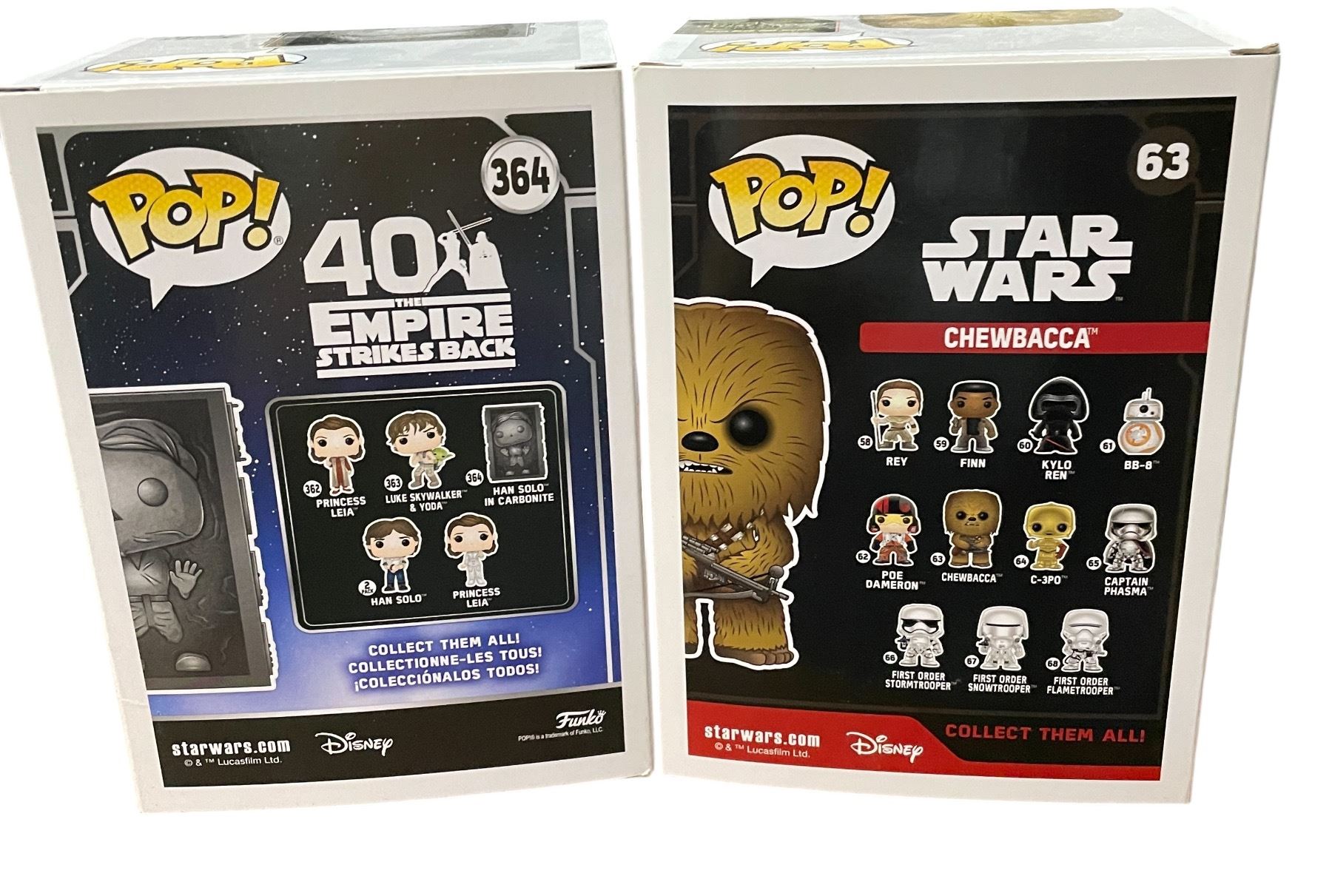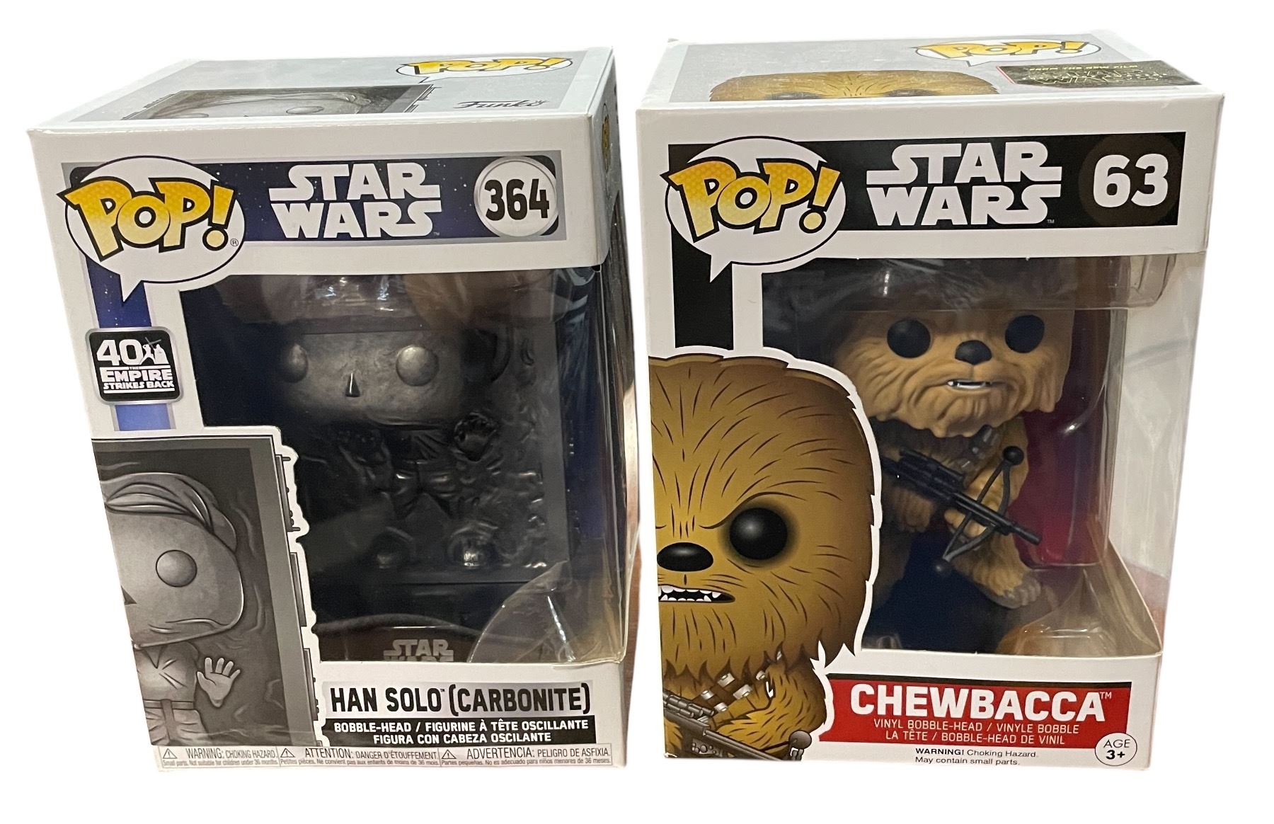 2 New Star Wars Funko Pops: Chewbacca #63 & Han Solo (Carbonite) #364