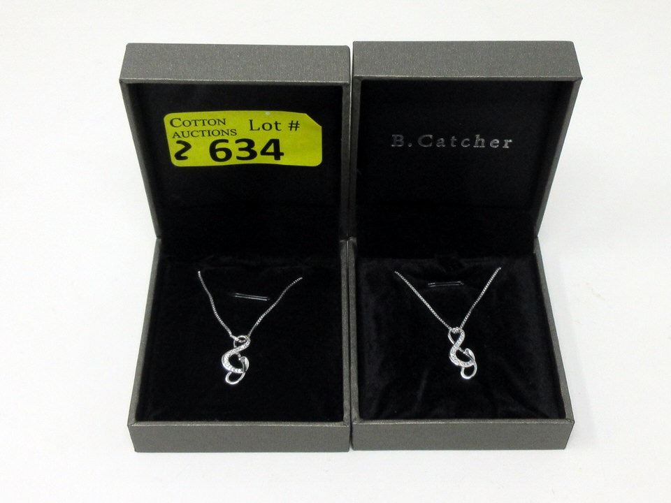 Cubic Zirconia. 9mm x 20mm pendants on a fine 18" box link chains. Gift boxes included.