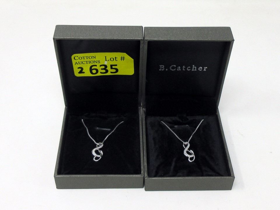 Cubic Zirconia. 9mm x 20mm pendants on a fine 18" box link chains. Gift boxes included.