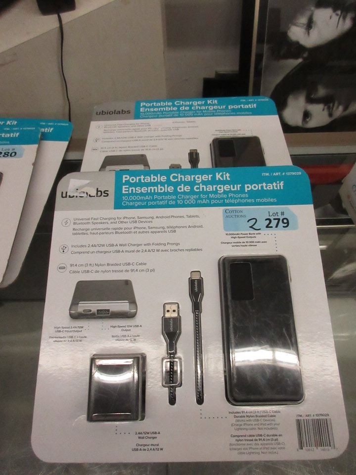 10,000 mAh Portable Power Bank, 2.4A USB Wall Charger with Folding Prongs, and 3 ft. Braided USB Type-C Cable with Aluminum Connectors