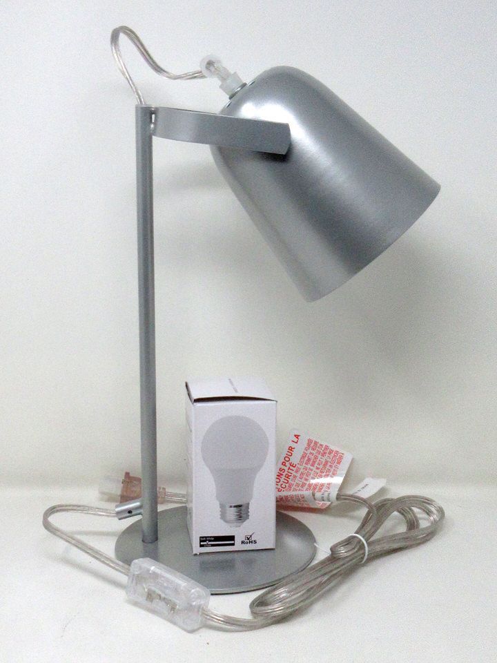Includes bulbs. 8" wide x 6" base x 14" tall.