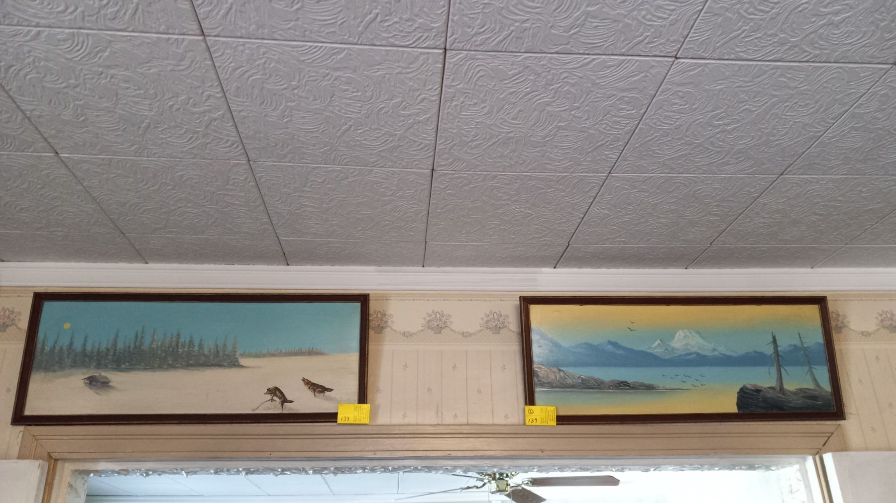 2 ORIGINAL PAINTINGS, "WOLVES" & "LAKE W/MOUNTAINS"