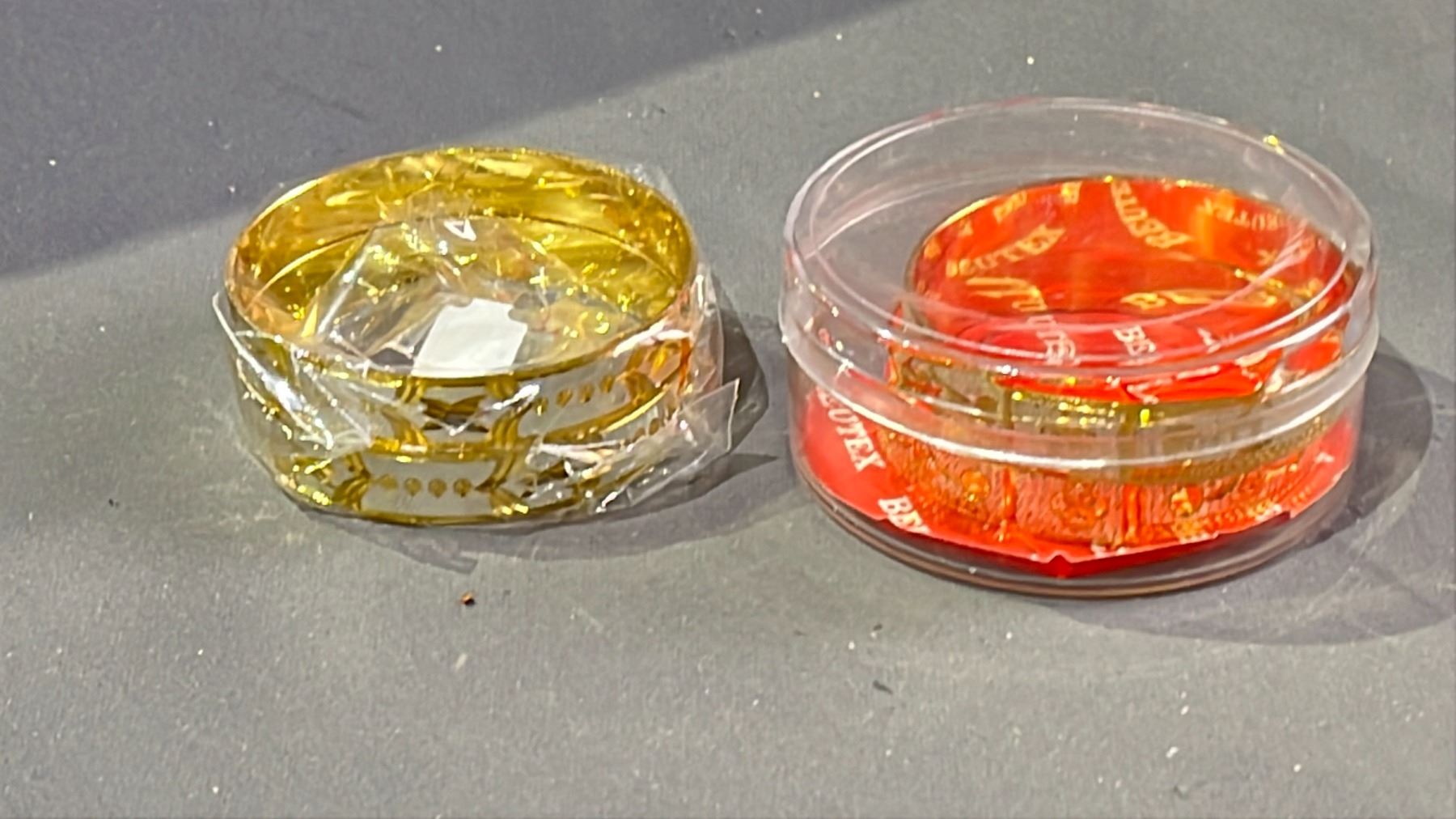 2 PACKS OF GOLD PLATED FASHION BANGLES RETAIL $180 EACH