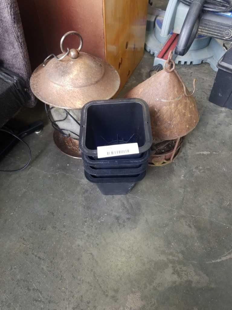 2 PAGODA STYLE BIRD FEEDERS WITH 4 PLANTER POTS