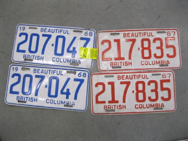 2 PAIR OF BC LICENCE PLATES 1968 & 1967