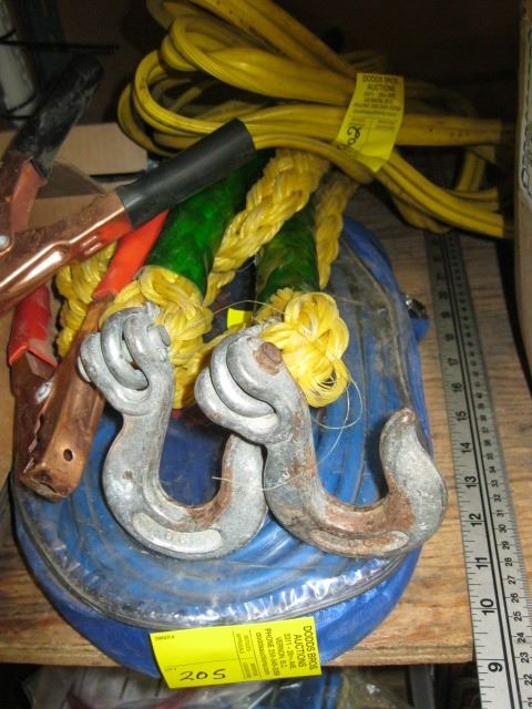 2 PAIR OF JUMPER CABLES & TOW ROPE
