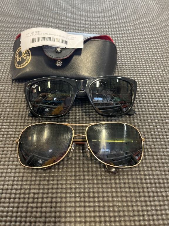 2 PAIRS OF RAY BAN SUNGLASSES, 1 CASE