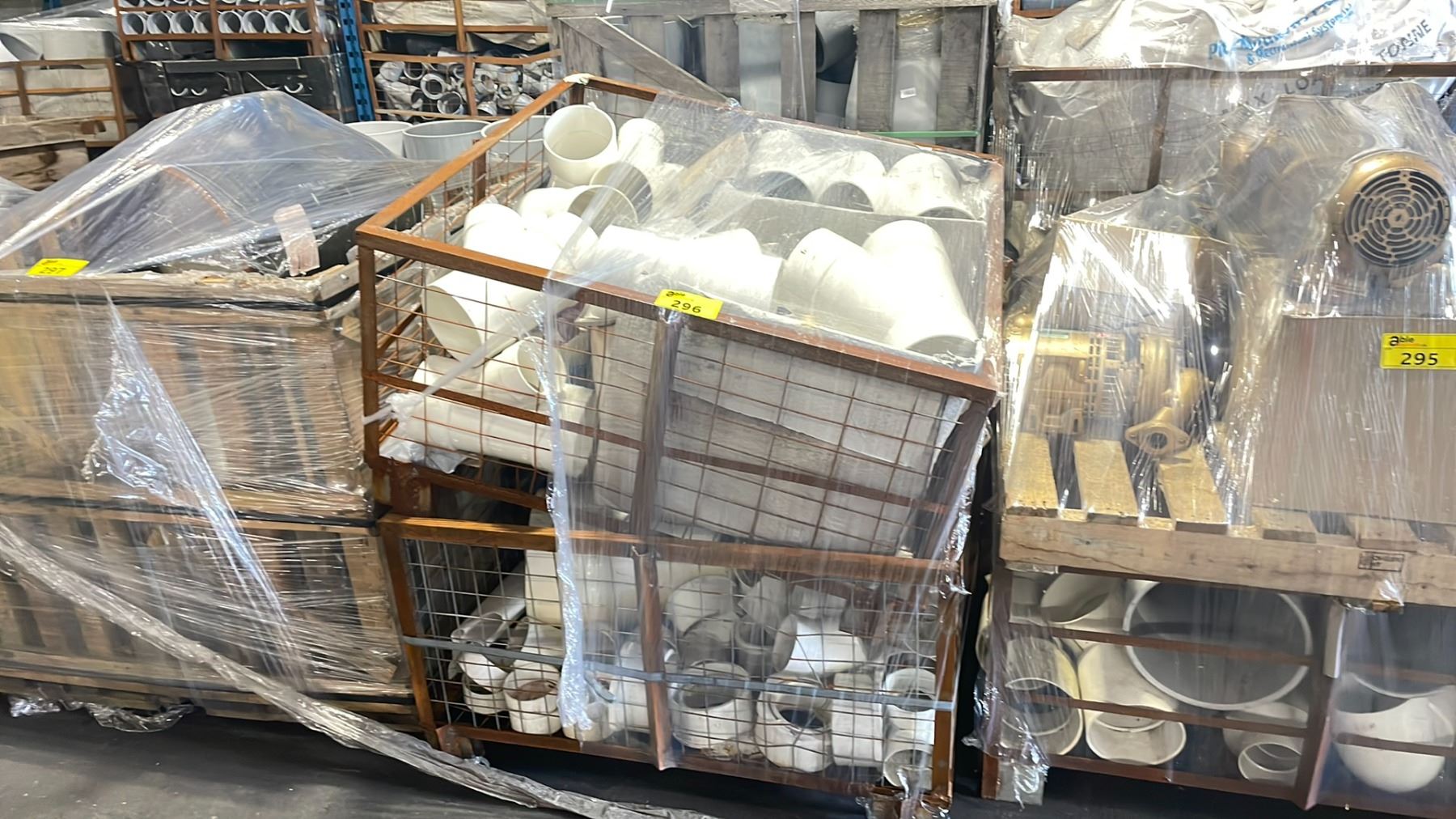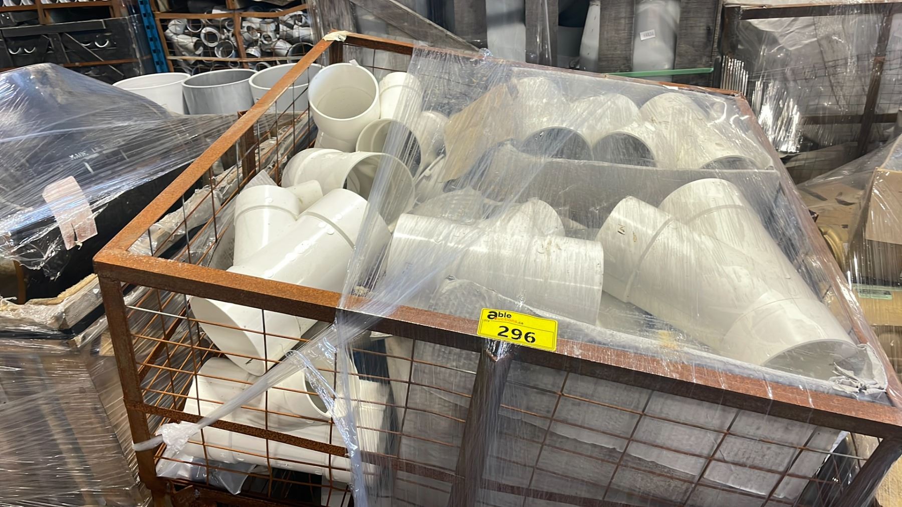 2 PALLET CRATES OF HEAVY DUTY ASSORTED INDUSTRIAL PVC PLUMBING PARTS & HARDWARE *PALLET CRATES INCLUDED*