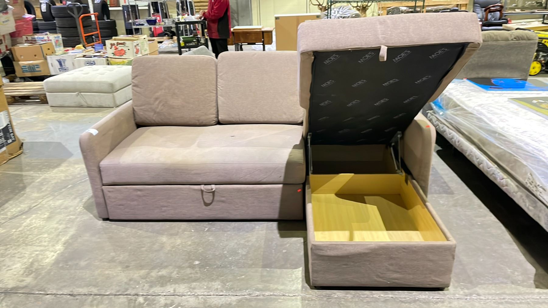 2-PC FABRIC SECTIONAL SOFA BED WITH CHAISE & STORAGE (CLEANING REQUIRED)