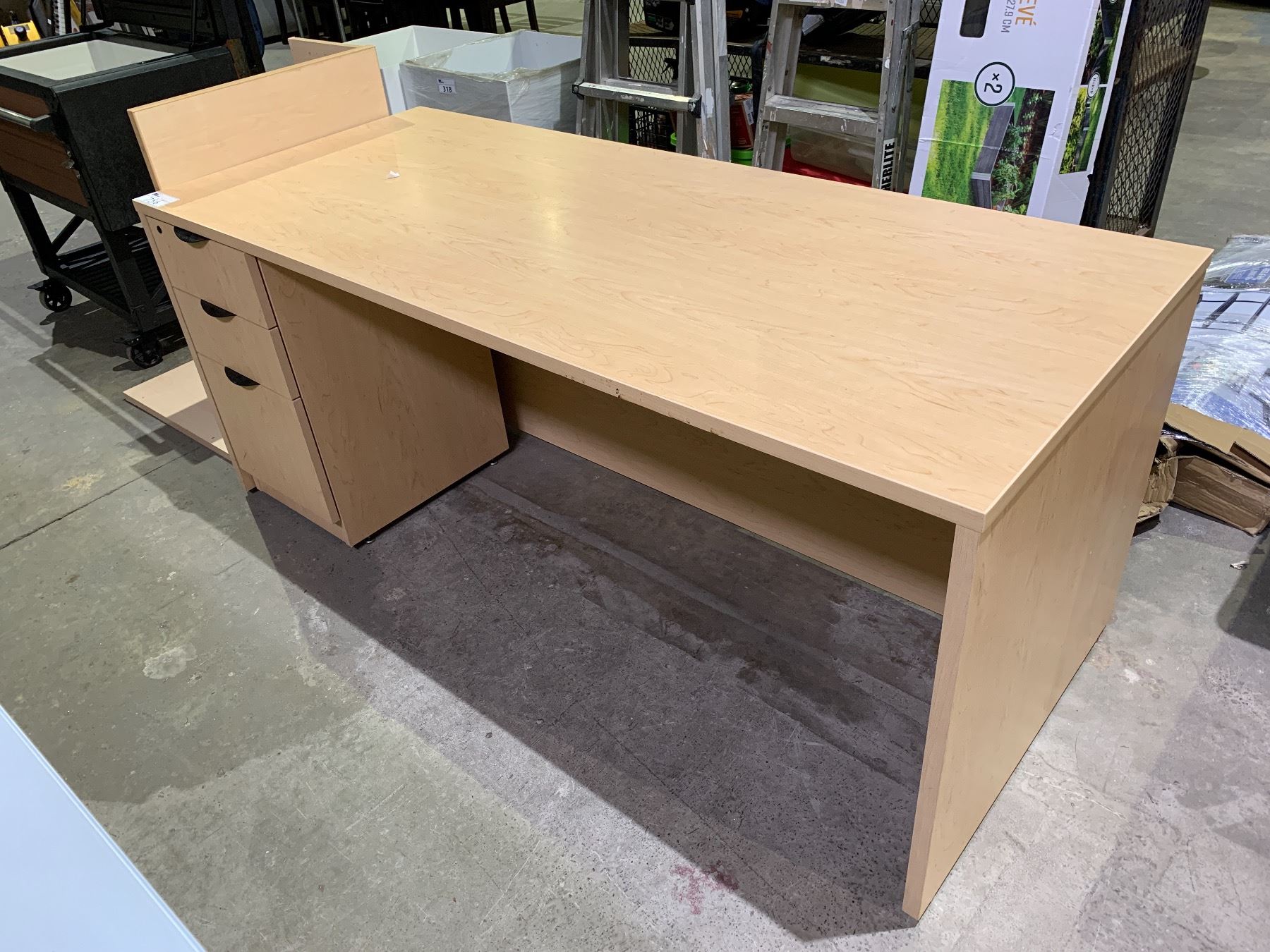 2-PC OFFICE DESK WITH KEYBOARD TRAY & 3 DRAWER CABINET 72X67X29-1/2"