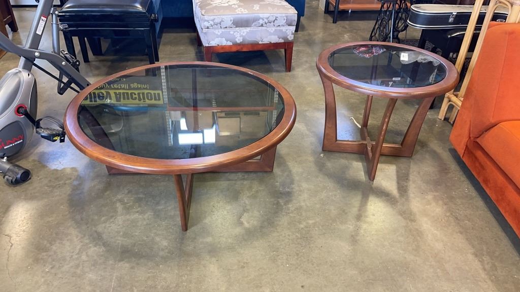 2 PC SMOKED GLASS COFFEE AND ENDTABLE SET