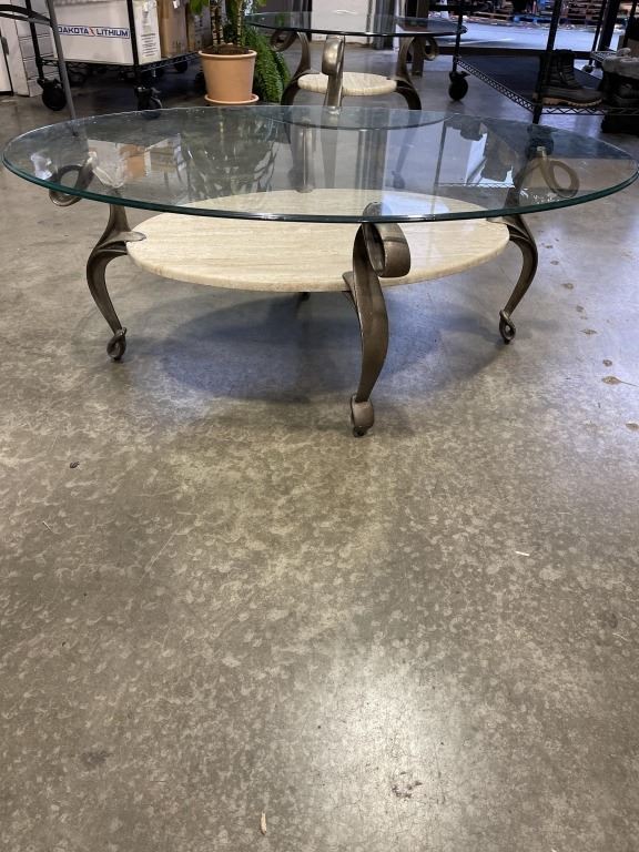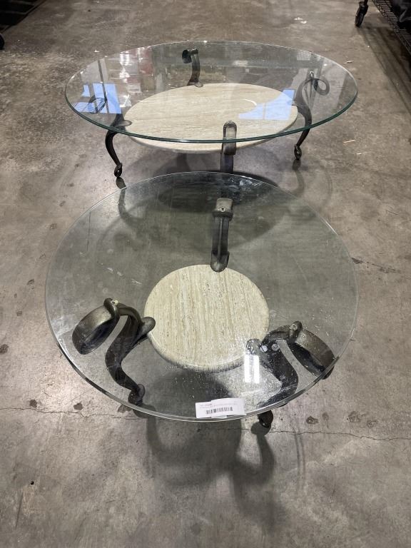 2 PIECE GLASS OP COFFEE AND END TABLE SET